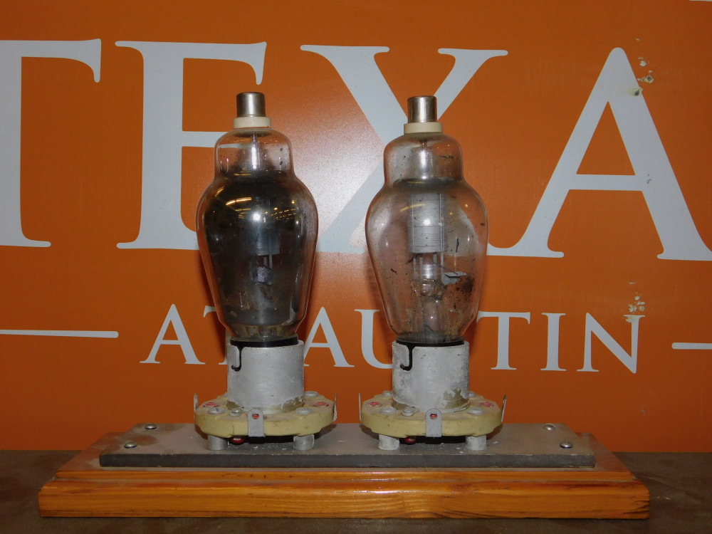 866's and HV Sockets Display. Set of 866's and HV sockets on wooden display base.