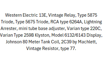 *All vacuum tubes are untested, their actual working condition is unknown, and they are presented to the best of our ability based solely on the photographs shown.