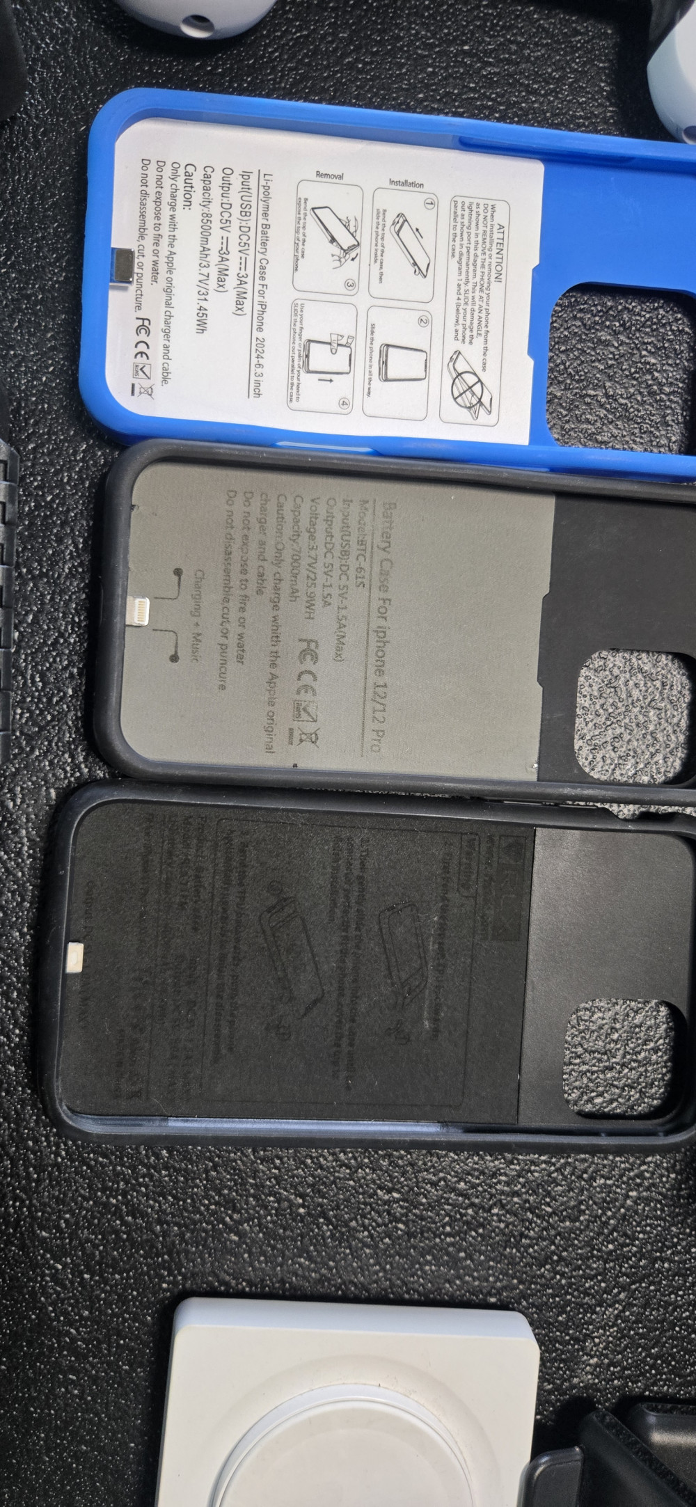 * iPhone 12/12 Pro Battery Charging Case (×1): black; charging cable (complete; working condition verified)