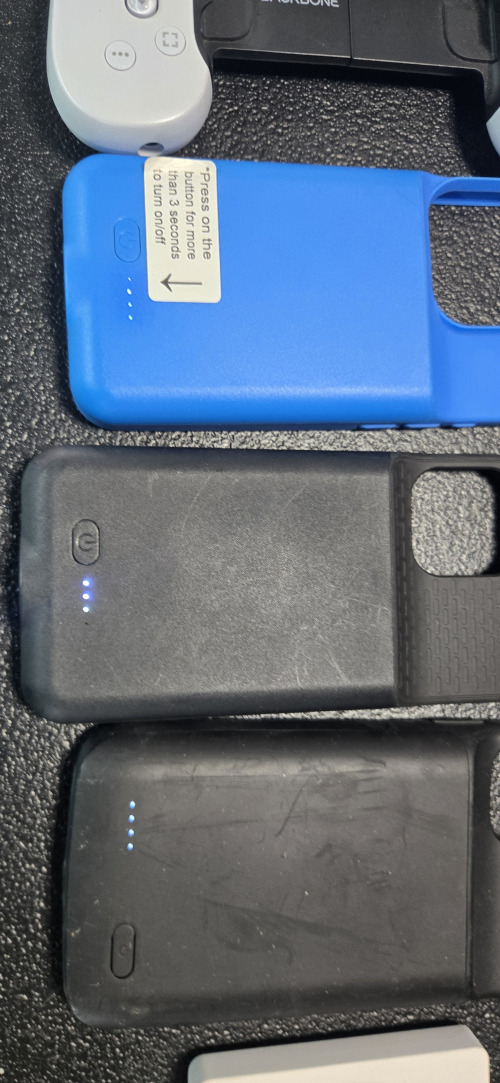 Enhance your phone’s battery life with this lot of three rechargeable battery cases. These cases are ideal for users who need extra power on the go. Each unit includes LED indicator lights to show charge level and a power button for easy operation.