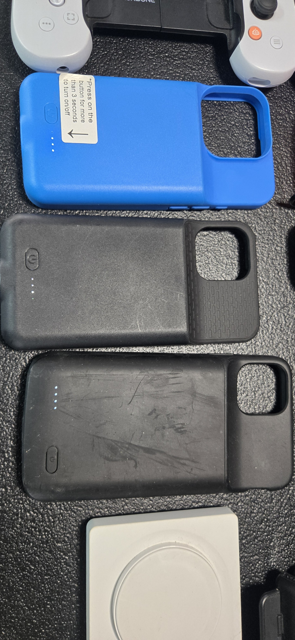 * iPhone 16/16 Pro Battery Charging Case (×1): blue; charging cable (complete; working condition verified)