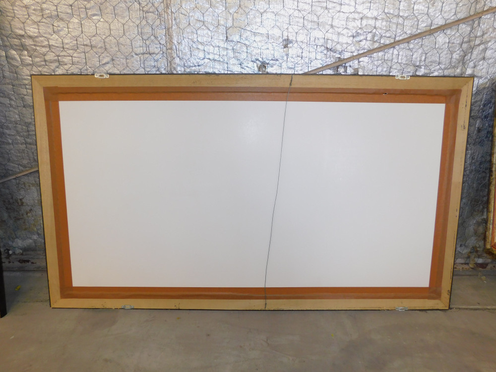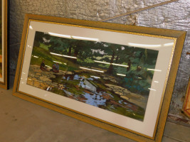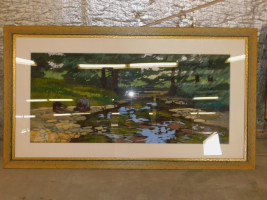 Large Natural Landscape Painting (#2). Slight wear to frame, painting glass is clear. Artist mark bears "Grammer 1997". 65x37"