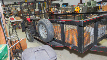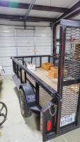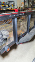 6 foot by 12 foot deck, 2 inch ball, adjustable height hitch, 6-way light plug, 3 inch by 3 inch square tubing top rail, 60 inch expanded metal gate, spring loaded gate closing assistance, LED lights, 5 lug axles, diamond plate side rails, heavy built trailer, non-titled unit. Condition:unknown