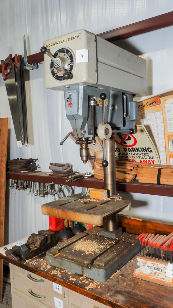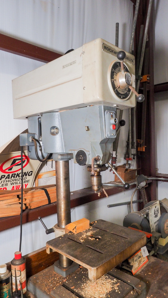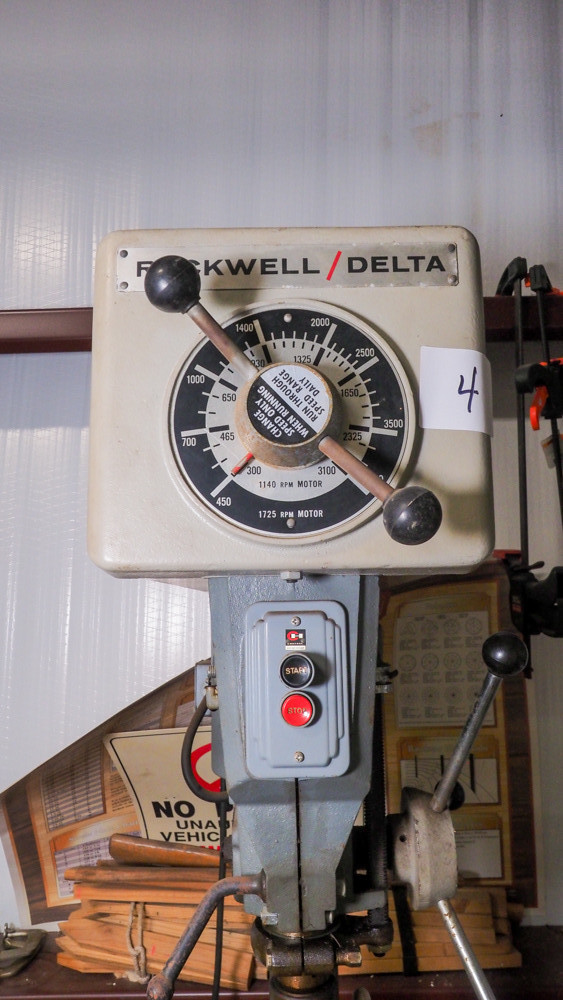 Series 15-655, serial number 1513252, 3/4 horsepower, 1725 RPM motor, drill press RPM is 450 to 4700, variable speed, 15 inch drill press model VS6 with desktop stand. Condition:Working, 110 volt