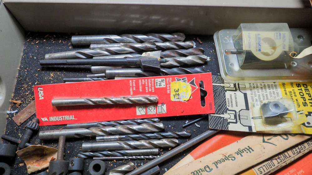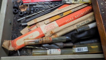 Drawer of metal bits, various sizes and styles.