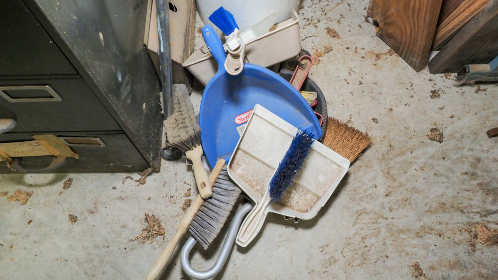 Includes hand brushes with dust pans, brooms, and floor sweepers.