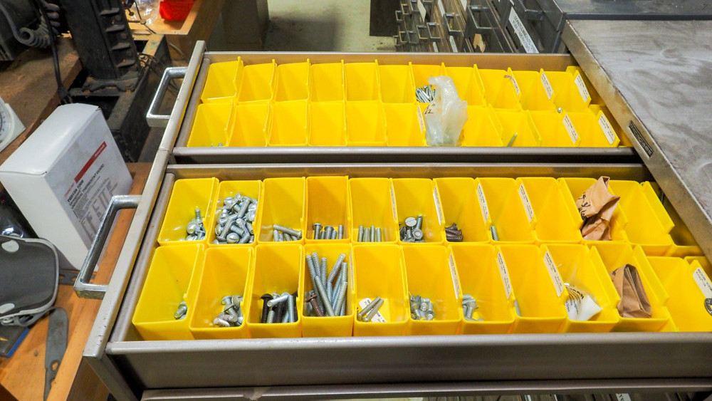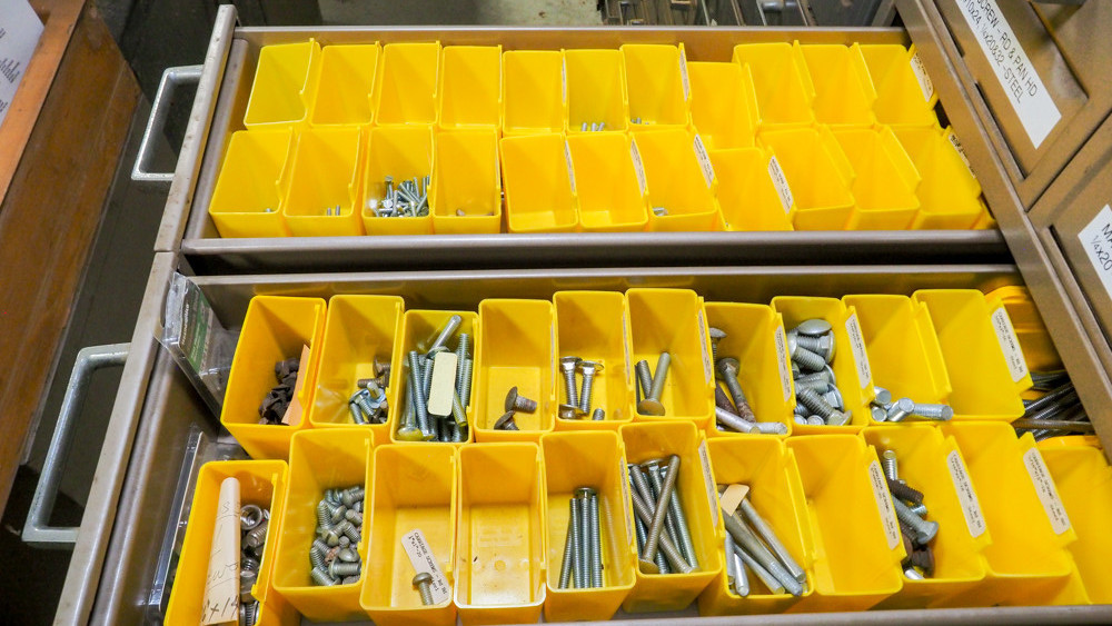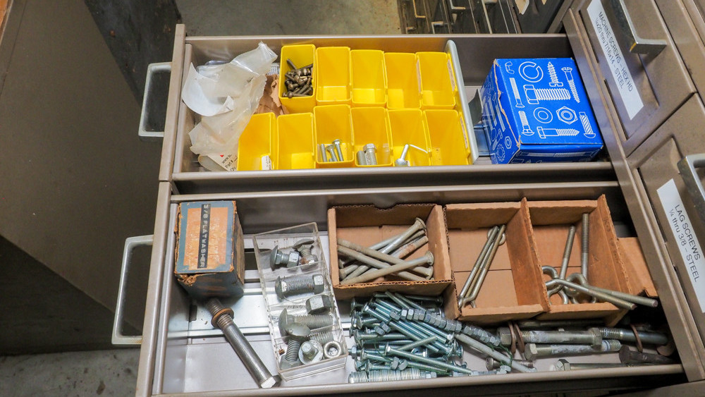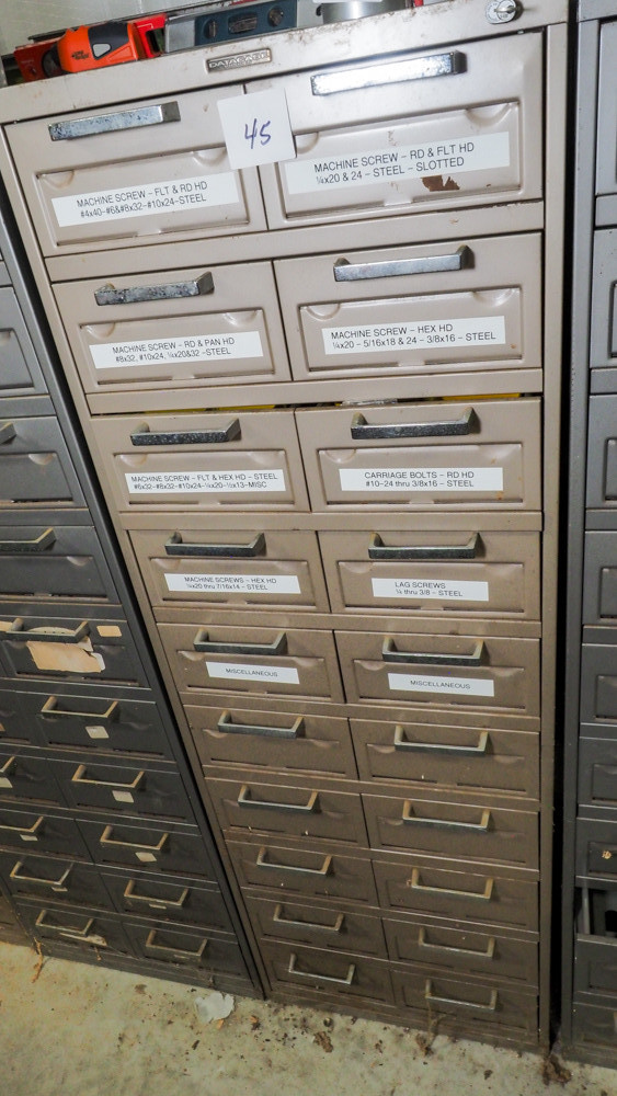 10 drawer cabinet includes machine screws, bolts, stove bolts, square head bolts, lag bolts, eye bolts, and more.