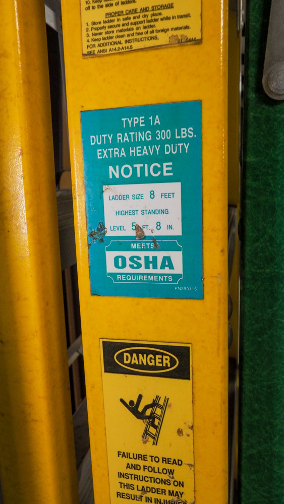 8 foot fiberglass ladder, 300 pound capacity.