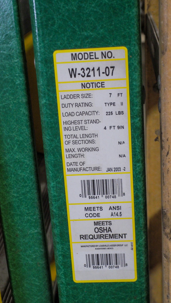 7 foot fiberglass ladder, 225 pound capacity.