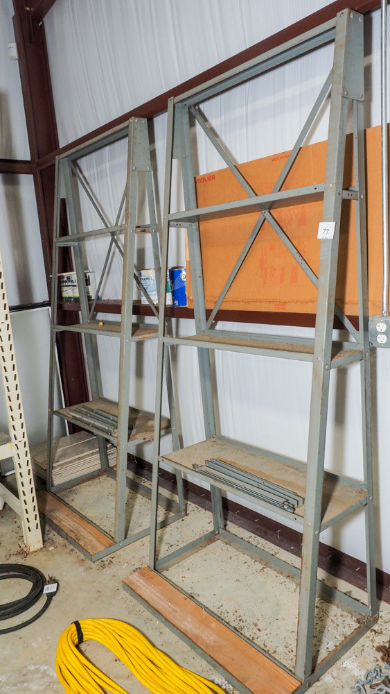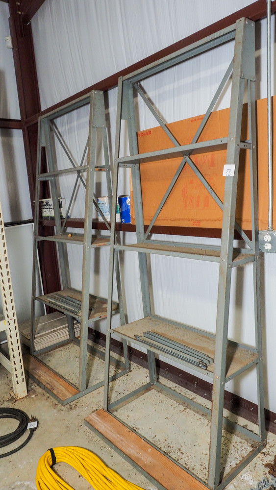 Two metal storage racks. 36 x 24 x 84, tapered frame