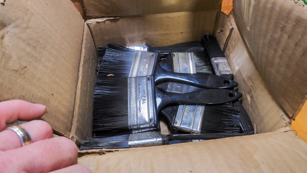 3 boxes of disposable brushes (#93) Construction Equipment & Tools Estate Auction Shop Equipment