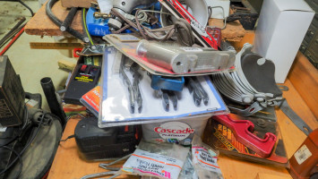 Includes door hardware, wall hanging fixtures, wire brushes, stud finders, 5 gallon pail openers, battery rechargers, knee pads, peg board hooks, and more