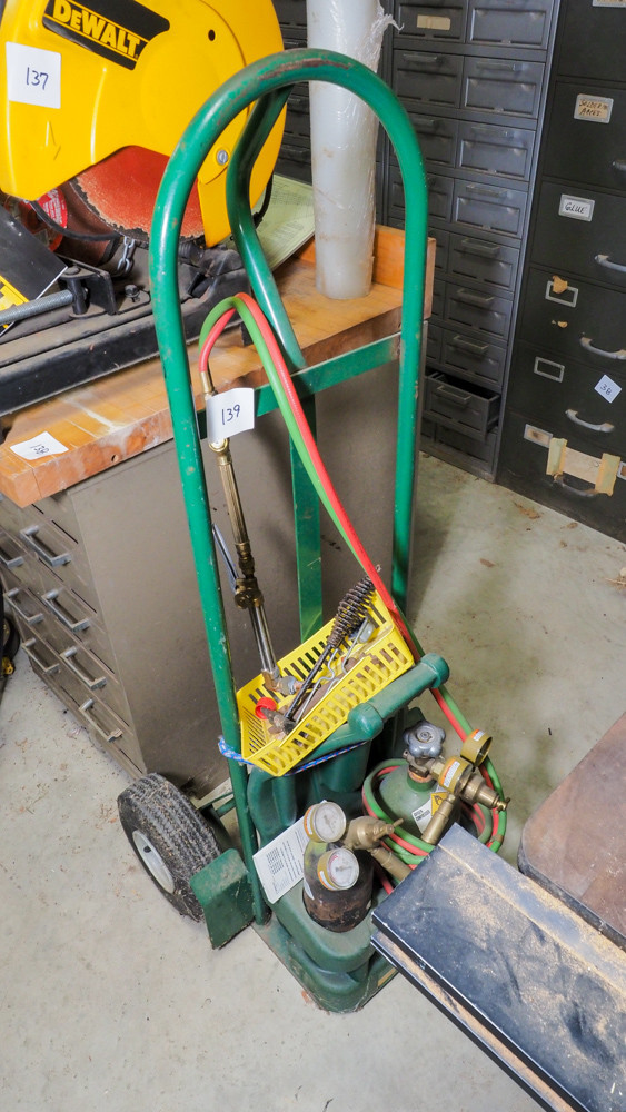 Small oxy-acetylene torch kit (#139) Construction Equipment & Tools Estate Auction Shop Equipment