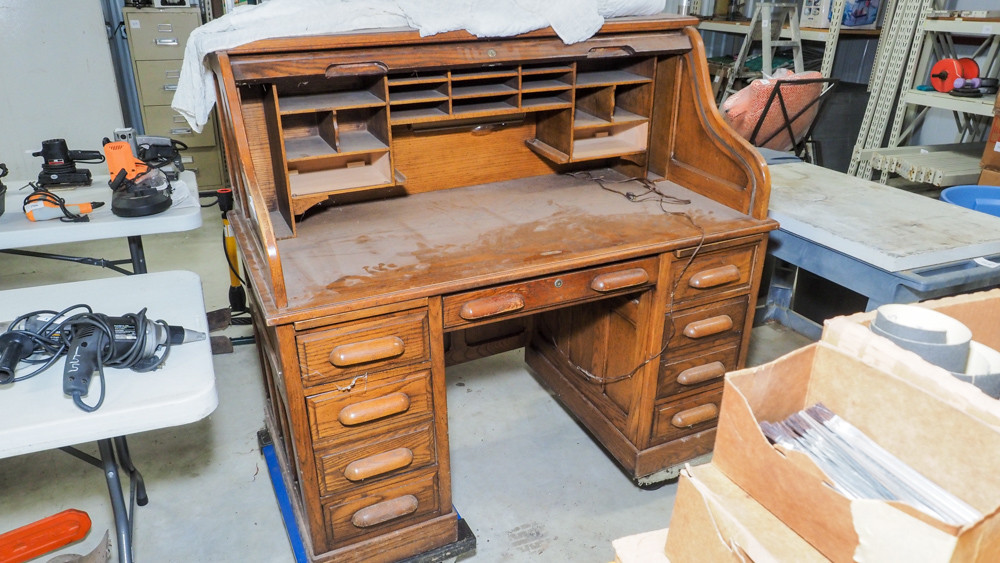 Oak roll top desk (#157) Estate Auction