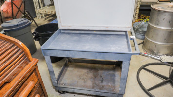 Topper measures 27 by 38 inches, cart is 34 inches tall, topper has rails