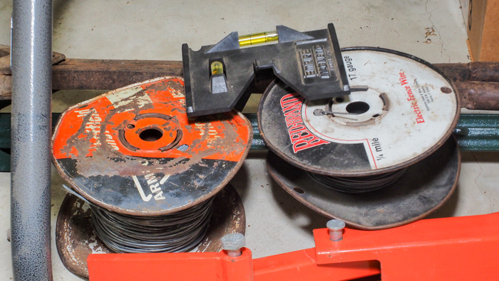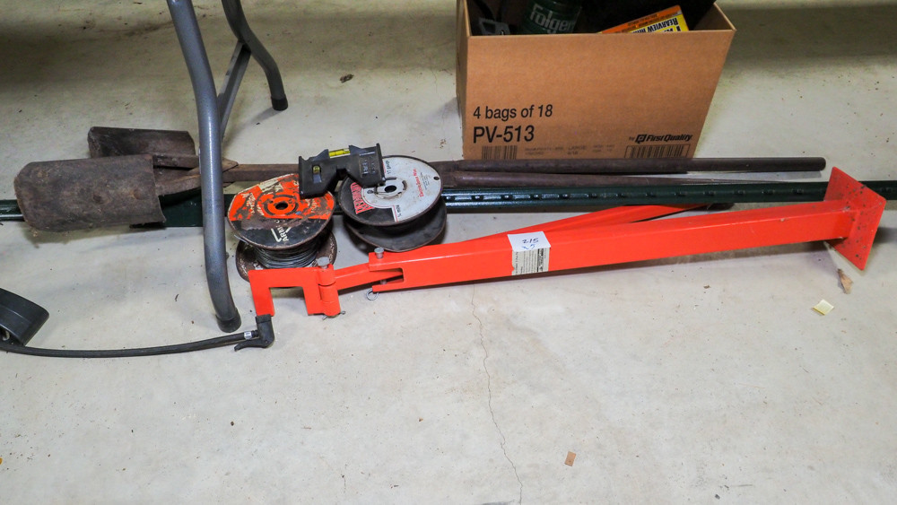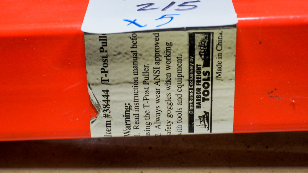 Includes post hole digger, T-post, electric wire, and T-post puller