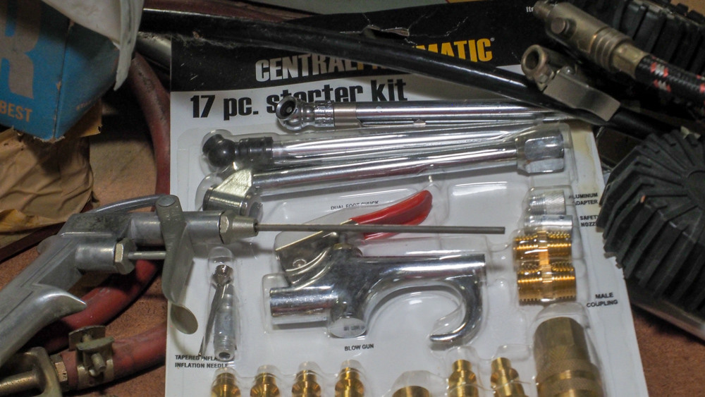 Includes blow guns, starter kit, filter/regulator, and fittings