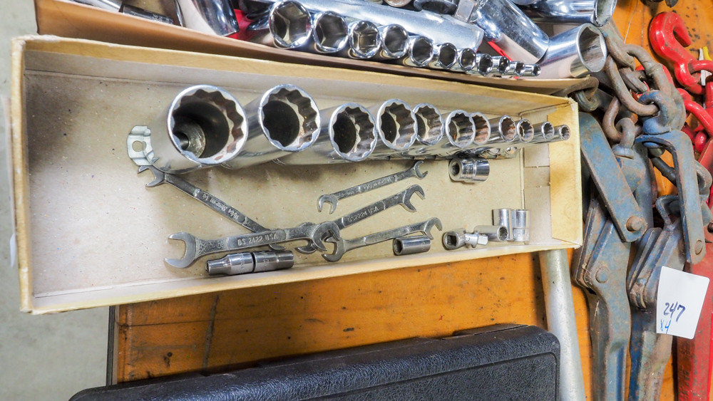 Snap-on sockets and wrenches (#245) Construction Equipment & Tools Estate Auction Shop Equipment