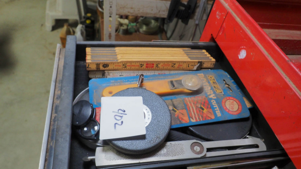 Includes wood yardsticks, Lufkin rulers, angle finders, Lufkin 50ft steel tape, rotary cutters, Lufkin 100ft steel tape, and magnifying glasses