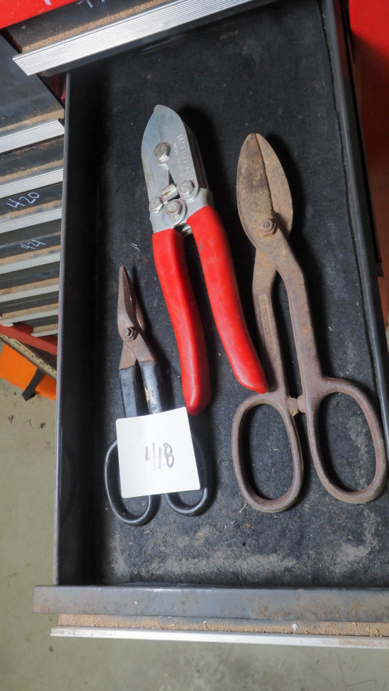 Two tin snips and a crimper