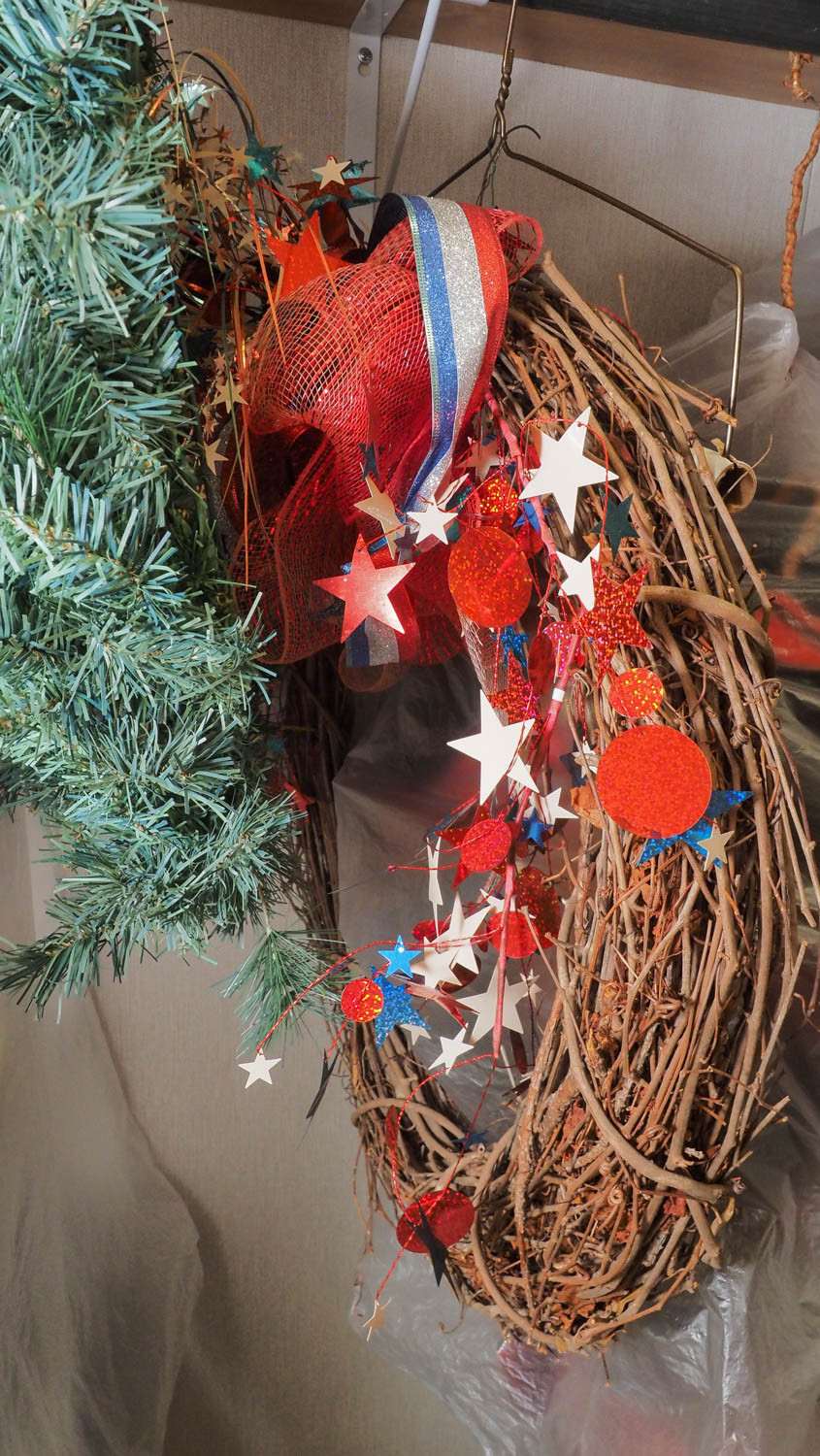 Nine wreaths including Easter, Fall, Spring, Christmas, and 4th of July