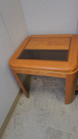 Wood rolling chair and side table (21 by 21 by 20 inches)