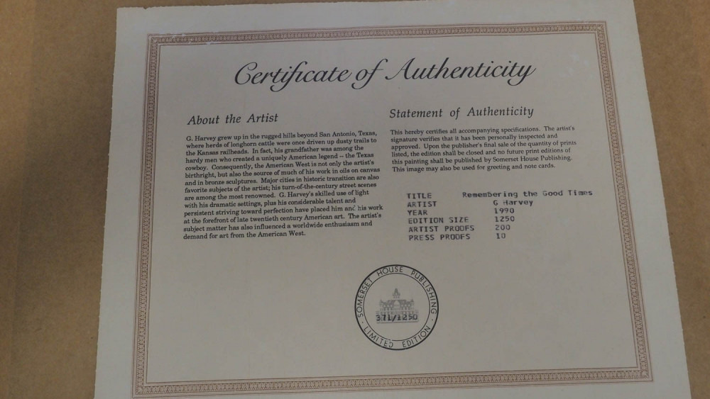 "Remembering the Good Times", double signed and numbered 371/1250, 30 by 38.5 inches