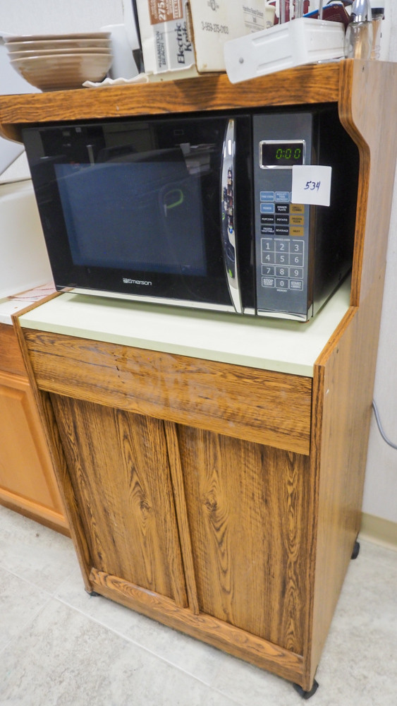 Emerson microwave with wood microwave cart (#534) Estate Auction