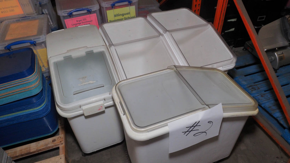 4 Rubbermaid/ Cambro White Ingredient Bins, rolling with covers (#2) Bryan Isd Surplus