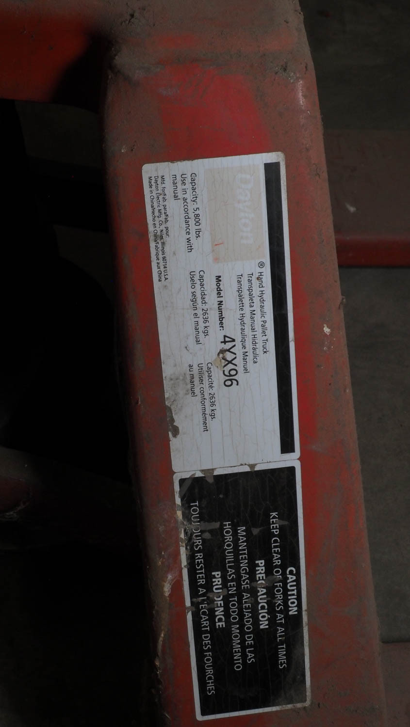 1 Dayton Manual Pallet Jack 4YX96 (#29) Bryan Isd Surplus