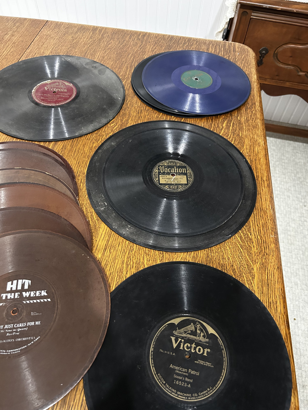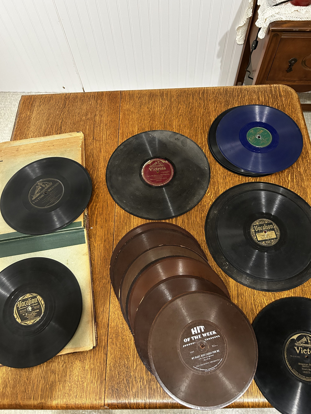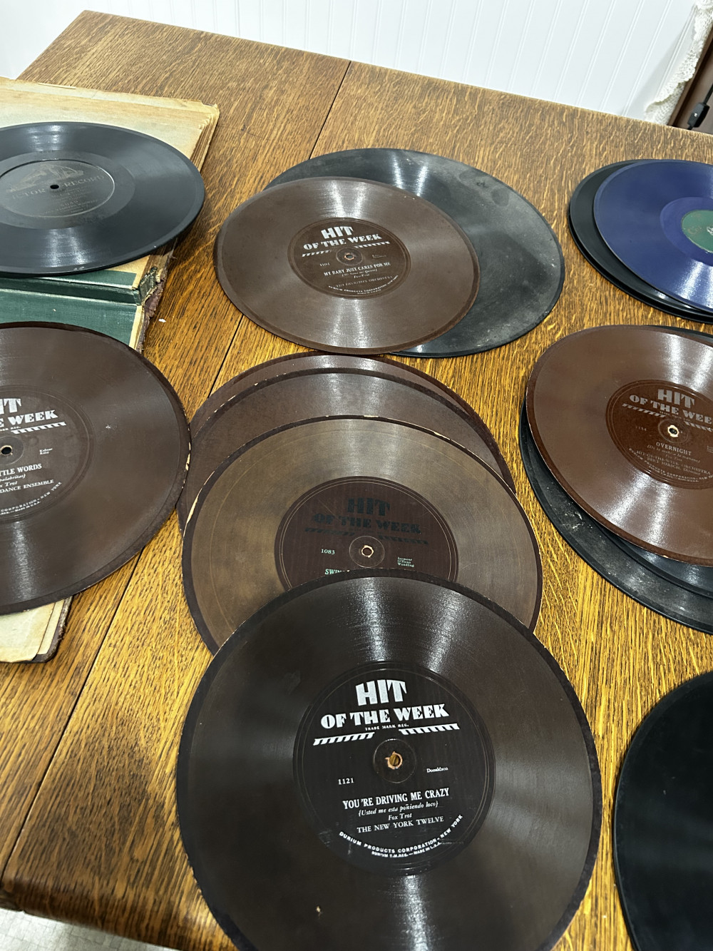 Antique records, the earliest one is from 1913 I believe, possibly 1906. There are 11 hard records, and eight of the paper records (hit of the week). Most of the paper records are from 1930. Probably 80% of them are in great shape, there are a couple that have numerous scratches but overall it is a good lot.