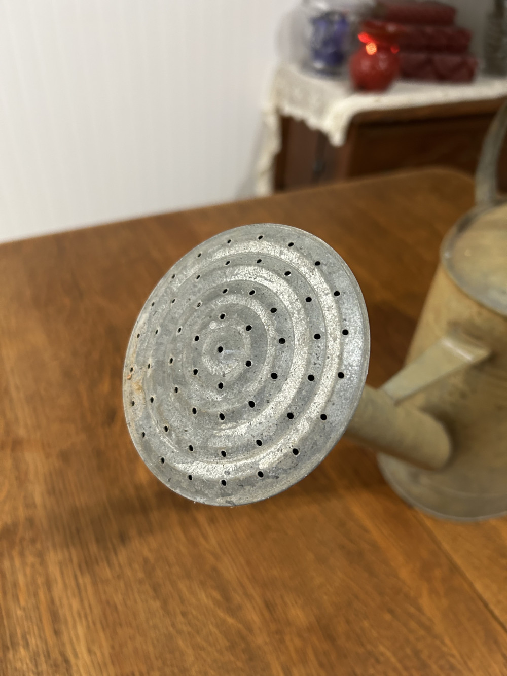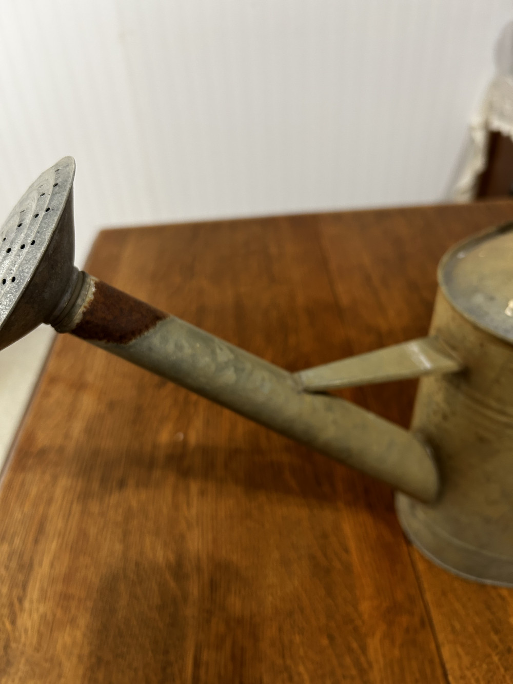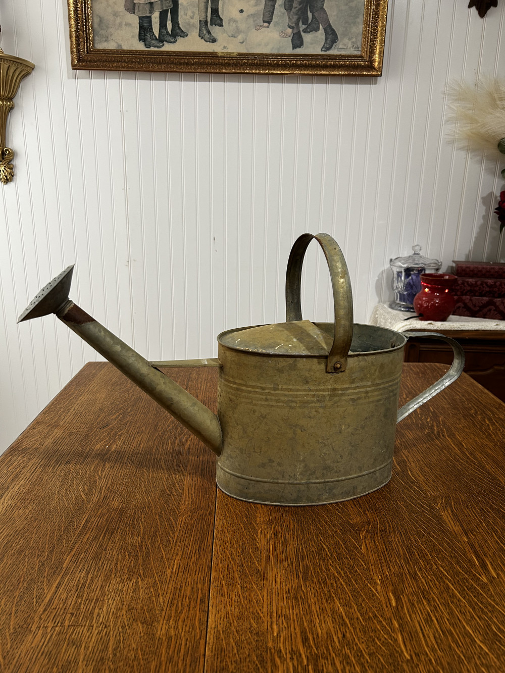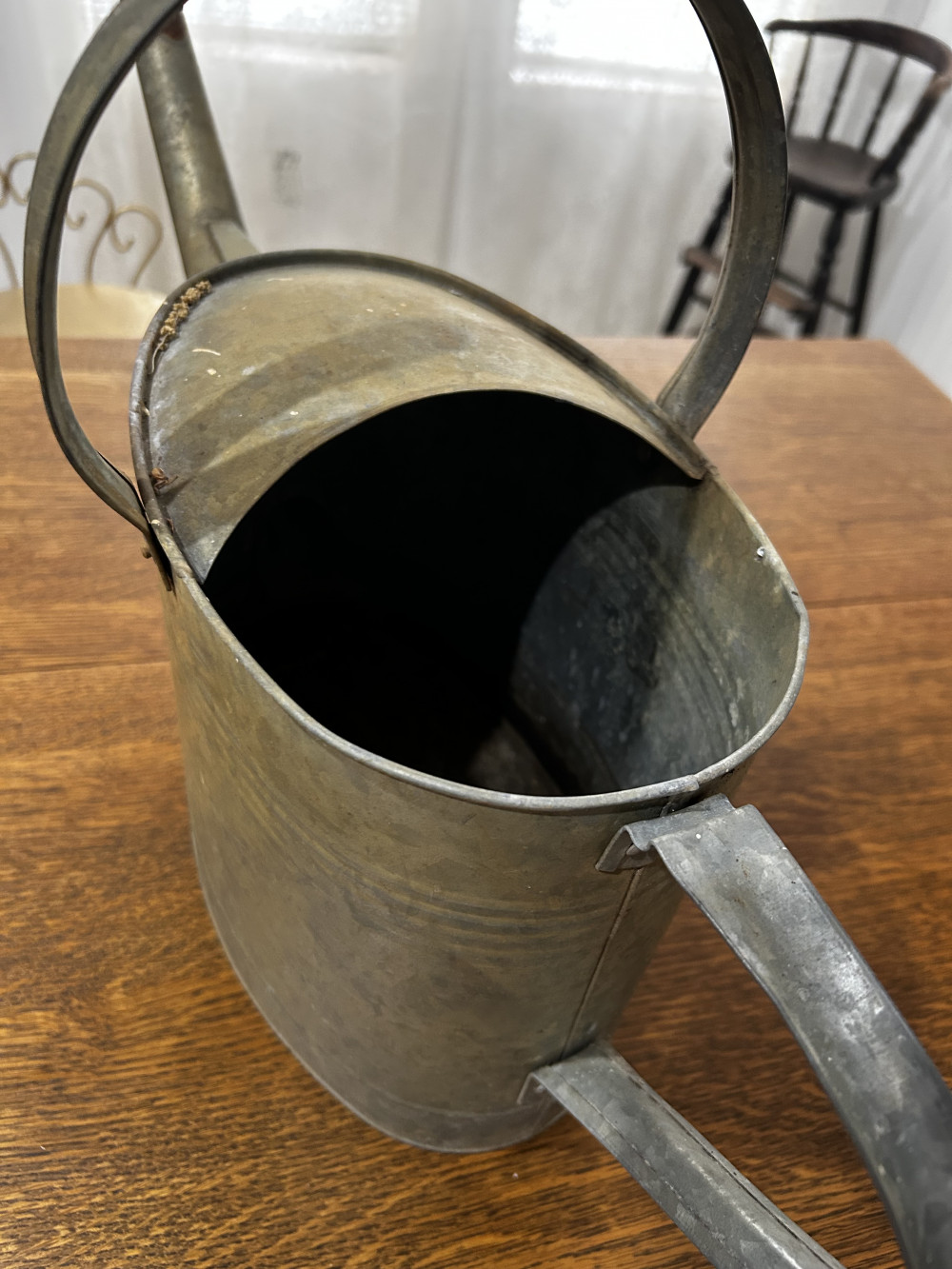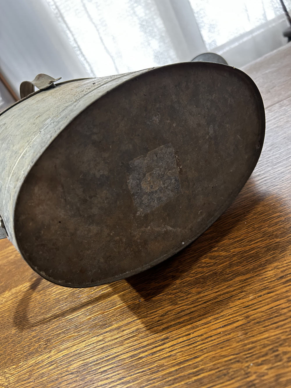 Antique watering bucket, no holes, can still be used as an actual watering bucket or decorations