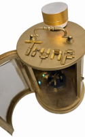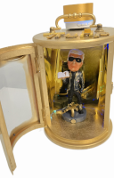The piece includes a custom-built showcase with a gold metallic finish and decorative top handle, creating an eye-catching presentation suitable for a collector, supporter, or donor looking for something truly distinctive.