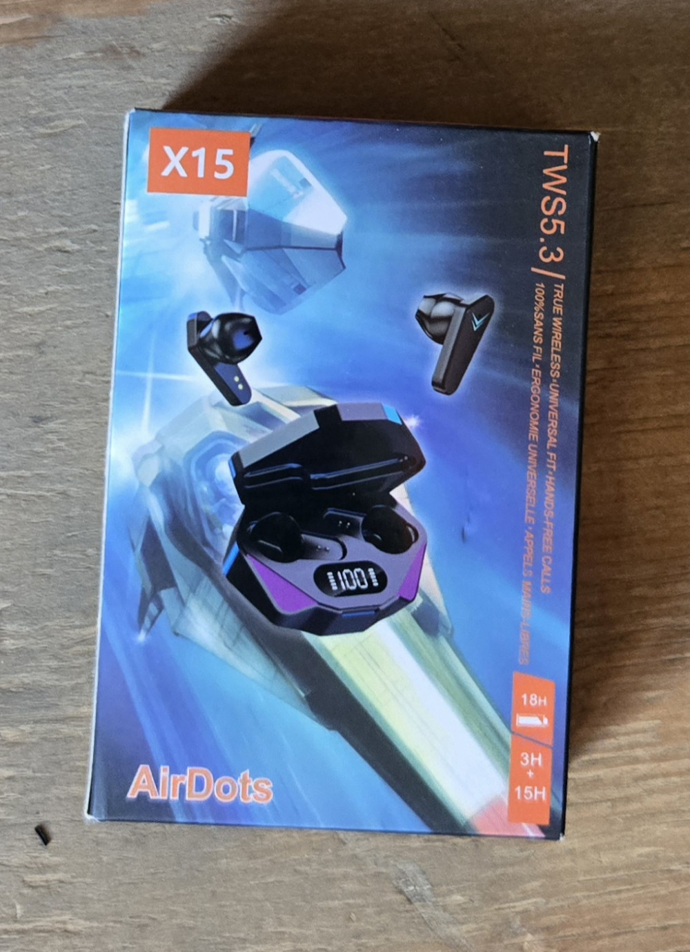 * X15 TWS Wireless Earbuds, gaming headphones with a digital display on the charging case.