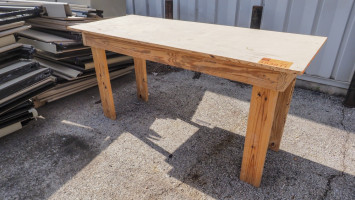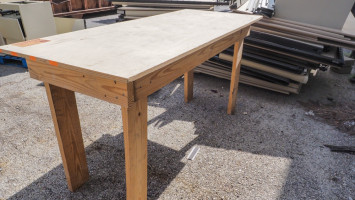 Measures 30 x 72 x 36 inches; made of 2 x 6 lumber with 3/4-inch plywood top *The University of Texas at Austin makes no claim of physical or mechanical , and functionality of items available through SWICO Auctions. All items are sold “As is, where is”. It is the sole responsibility of the bidder to physically inspect items before bidding and assume all risk. Photos and descriptions are for preview only. All sales are final and no refunds will be issued. Please refer to the SWICO “Terms of Service” in which you have agreed to.