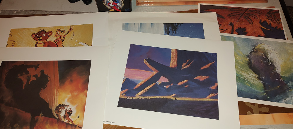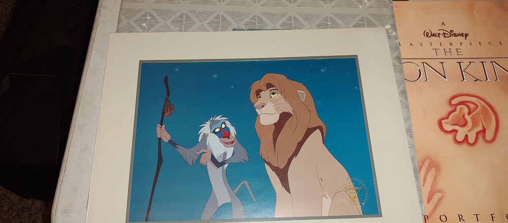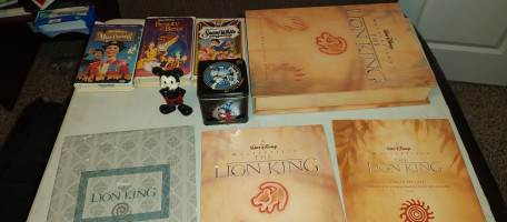 Disney Lot Including VHS Tapes vintage Mickey Mouse bobbled head and some Original Certified Lion King Lithographs with a Circle of Life Exclusive Commemorative Epigraph 1995