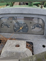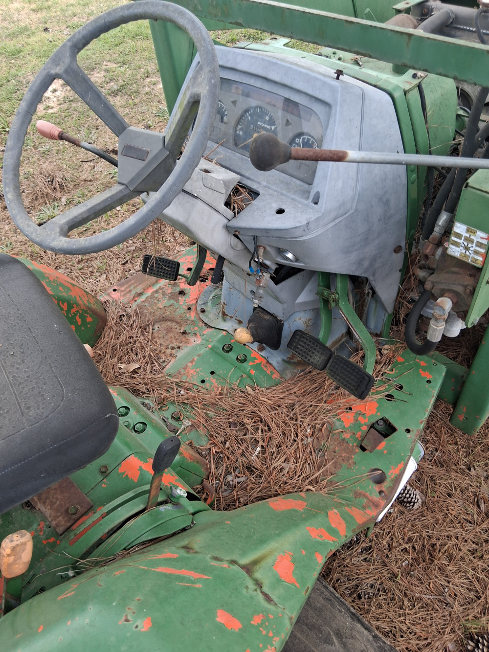 Kubota tractor with front bucket and backhoe. Based upon backhoe model, this tractor appears to be an L35 industrial Kubota tractor, BUT no guarantees. Please do your own research.