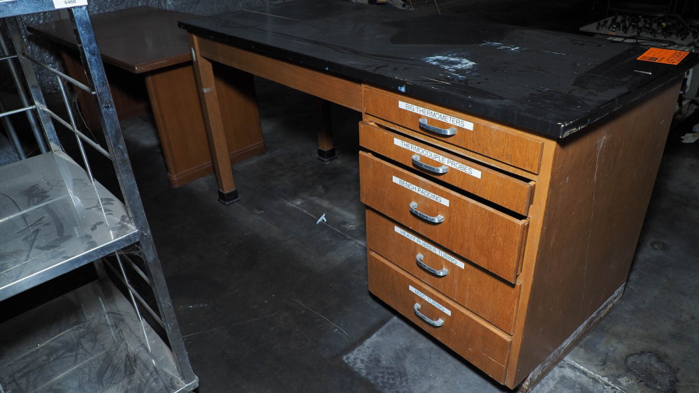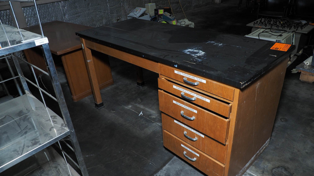 30" x 72", wood top, 5 drawers *The University of Texas at Austin makes no claim of physical or mechanical , and functionality of items available through SWICO Auctions. All items are sold “As is, where is”. It is the sole responsibility of the bidder to physically inspect items before bidding and assume all risk. Photos and descriptions are for preview only. All sales are final and no refunds will be issued. Please refer to the SWICO “Terms of Service” in which you have agreed to.