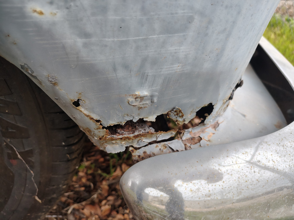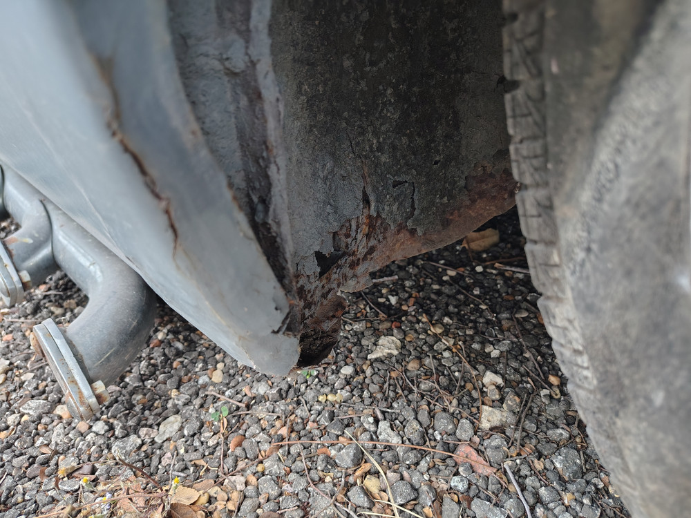 Exterior: some rust spots, unfinished paint