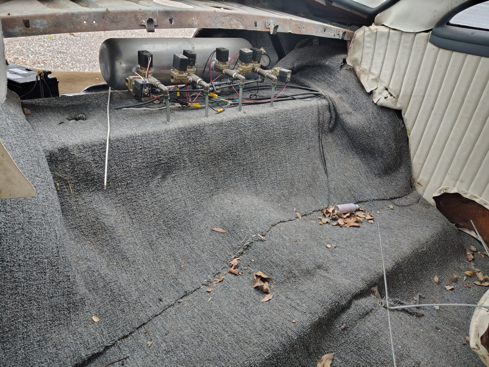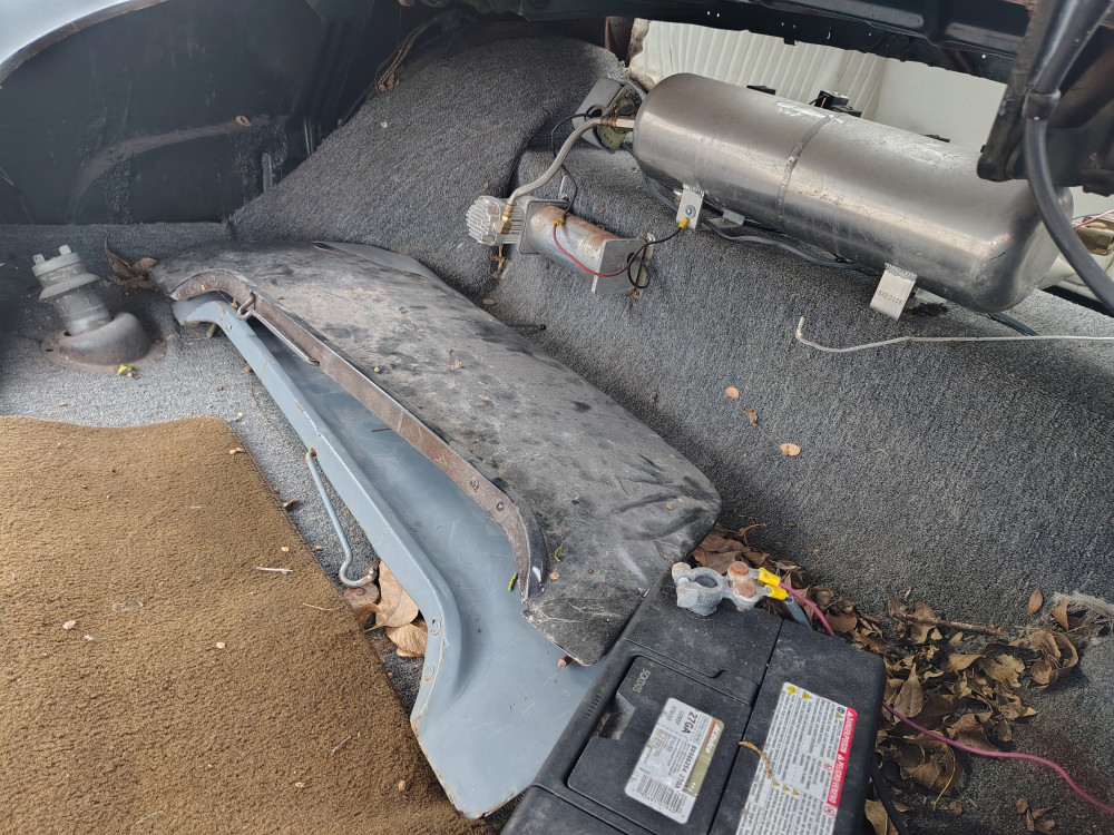Flat Tire, air bags suspension system, but front driver side has a slow leak.