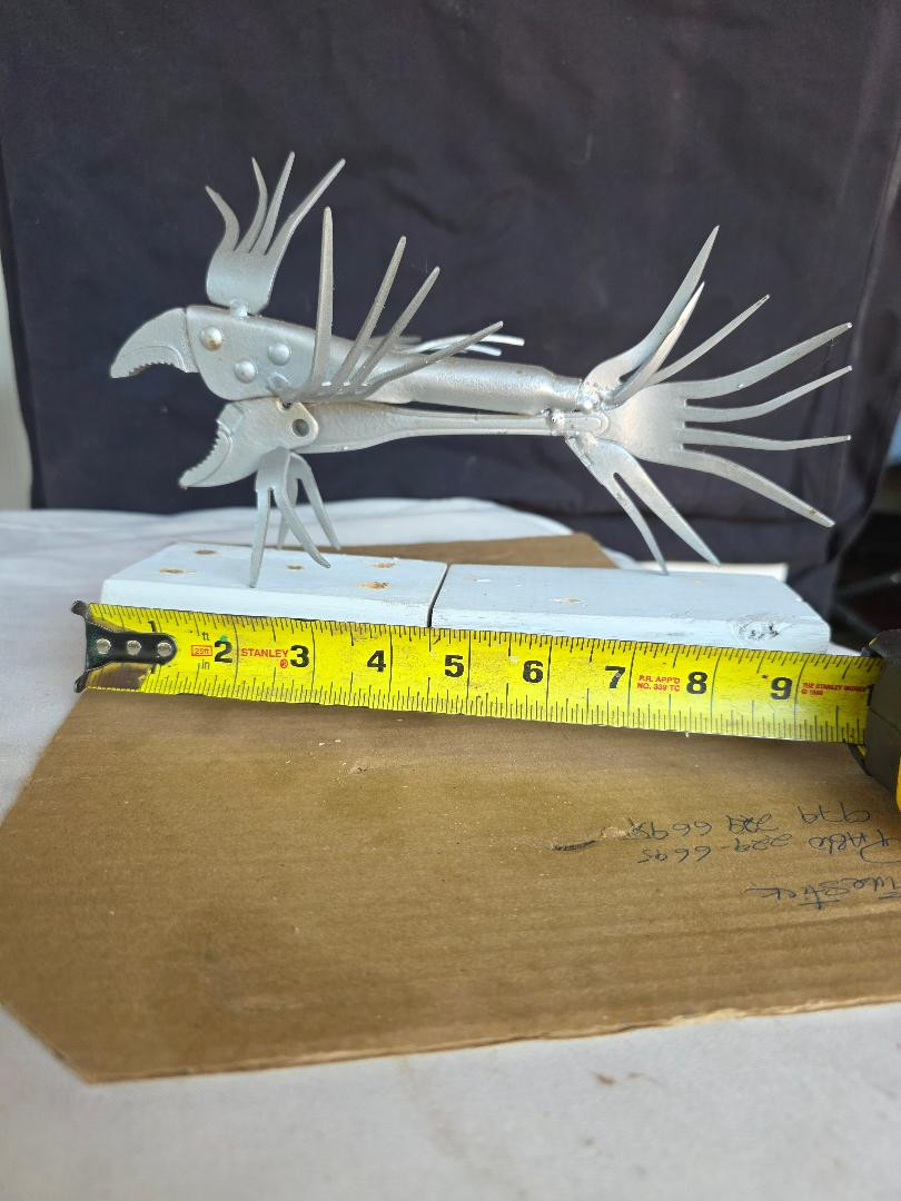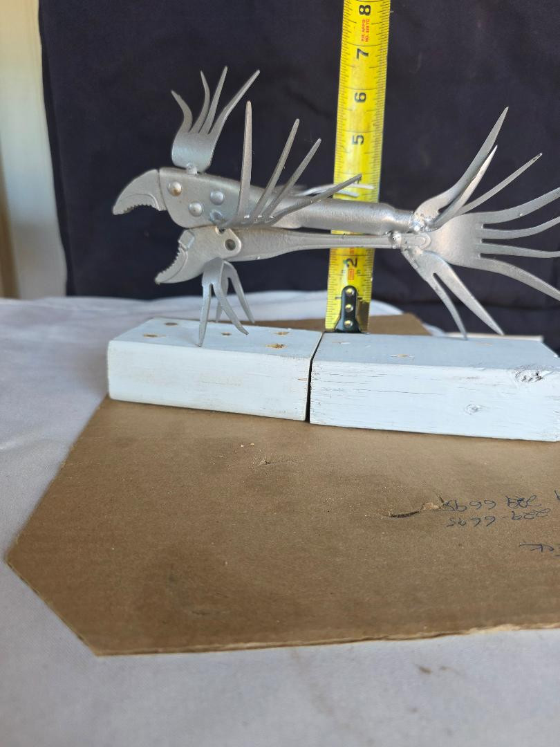 My version of Lionfish made from vise grips and forks. Has a base paint in silver, but can be painted to your liking.