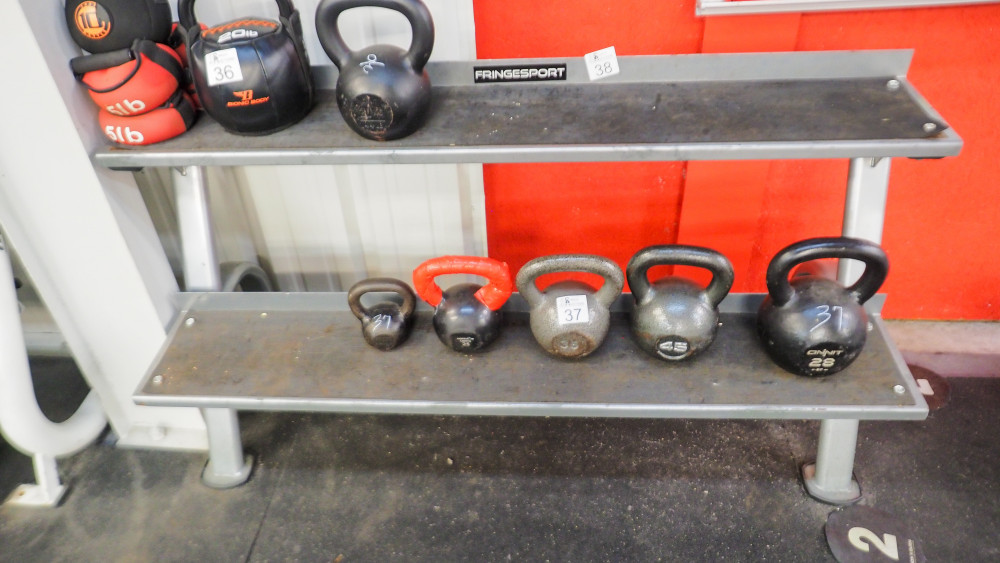 ** Winning this bid is contingent on the higher of Lot 0 the Entirety of Auction Items lot and the total of the individual Lots**. If the Lot 0 Entirety of Auction Items lot sells for a higher value than the total of the individual lots; the auction items will be sold to the high bidder of the Entirety lot. If the total of the individual lots is higher than the Entirety of Auction Items lot, then the items will be sold to the high bidder of the individual lots. 59" wide; does not include kettlebells