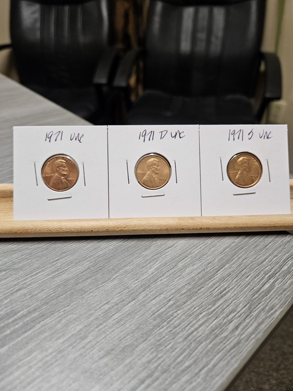1971 P,D,S Uncirculated Copper Lincoln Memorial Cent set Coins & Currency