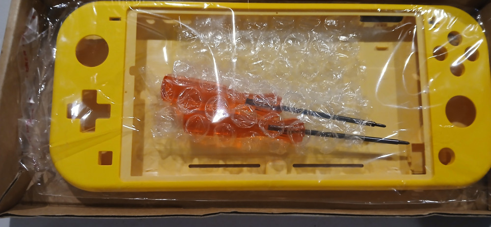 This auction is for a New Nintendo Switch plastic Shell -Yellow , never used, includes 2 little screwdrivers . I did open the package to take pictures