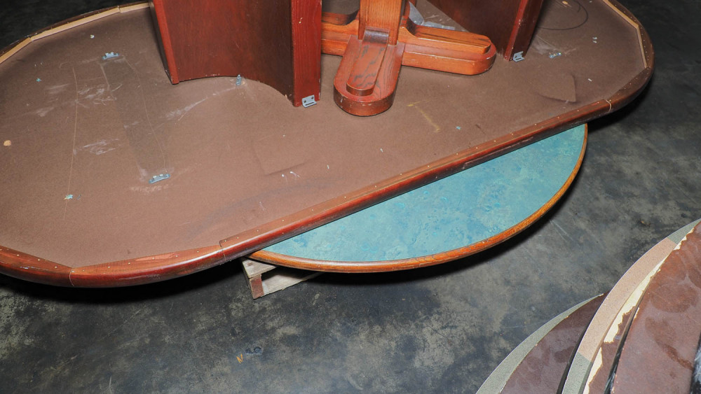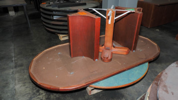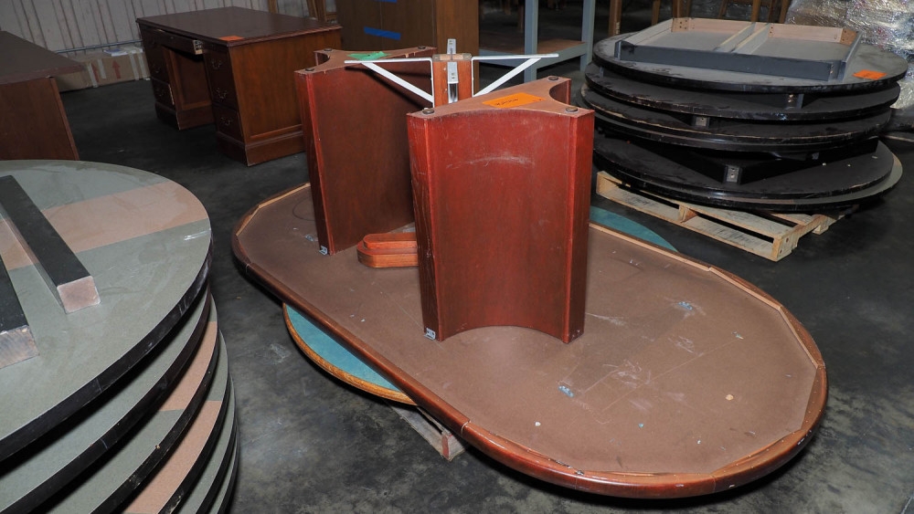 Two tables currently taken apart; includes one 4-foot wood table with two wood pedestals and one 5-foot wood table with a single center wood base. *The University of Texas at Austin makes no claim of physical or mechanical , and functionality of items available through SWICO Auctions. All items are sold “As is, where is”. It is the sole responsibility of the bidder to physically inspect items before bidding and assume all risk. Photos and descriptions are for preview only. All sales are final and no refunds will be issued. Please refer to the SWICO “Terms of Service” in which you have agreed to.