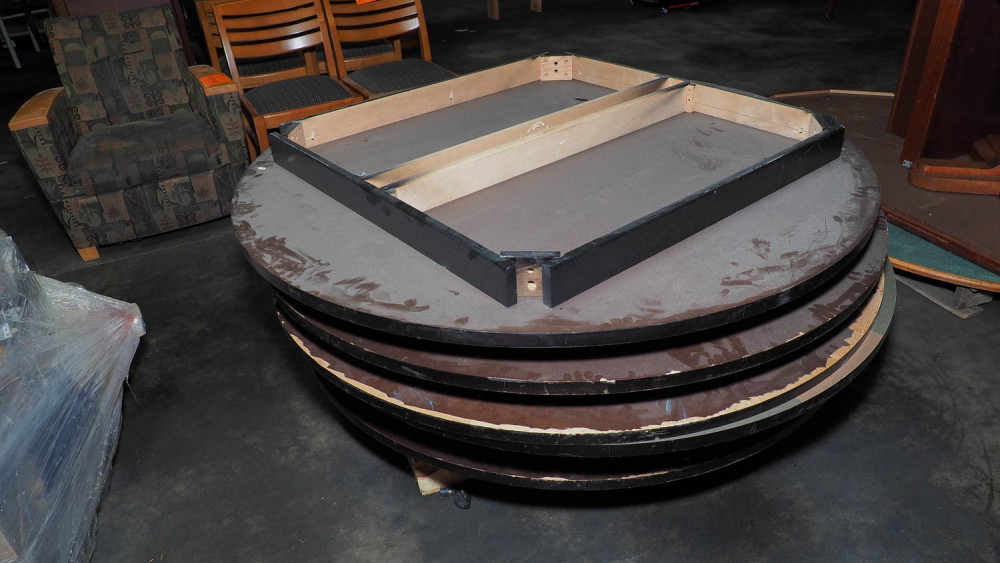 Six 5-foot tables; legs have been removed but are included. *The University of Texas at Austin makes no claim of physical or mechanical , and functionality of items available through SWICO Auctions. All items are sold “As is, where is”. It is the sole responsibility of the bidder to physically inspect items before bidding and assume all risk. Photos and descriptions are for preview only. All sales are final and no refunds will be issued. Please refer to the SWICO “Terms of Service” in which you have agreed to.