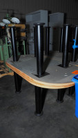 Two tables measuring 72 x 36 x 29 inches; wood tops and metal legs.