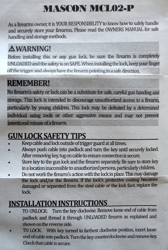 New Gun Lock Mascon Model # MCL02-P 2 Each