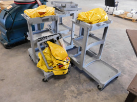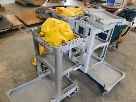 3 ct. custodial carts with yellow bag liners, no other available accessories.