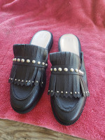 Size 9 womens leather slide on shoes. Never worn
